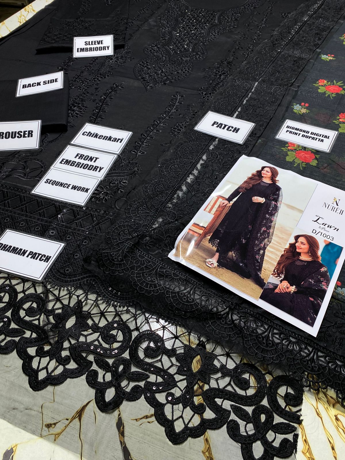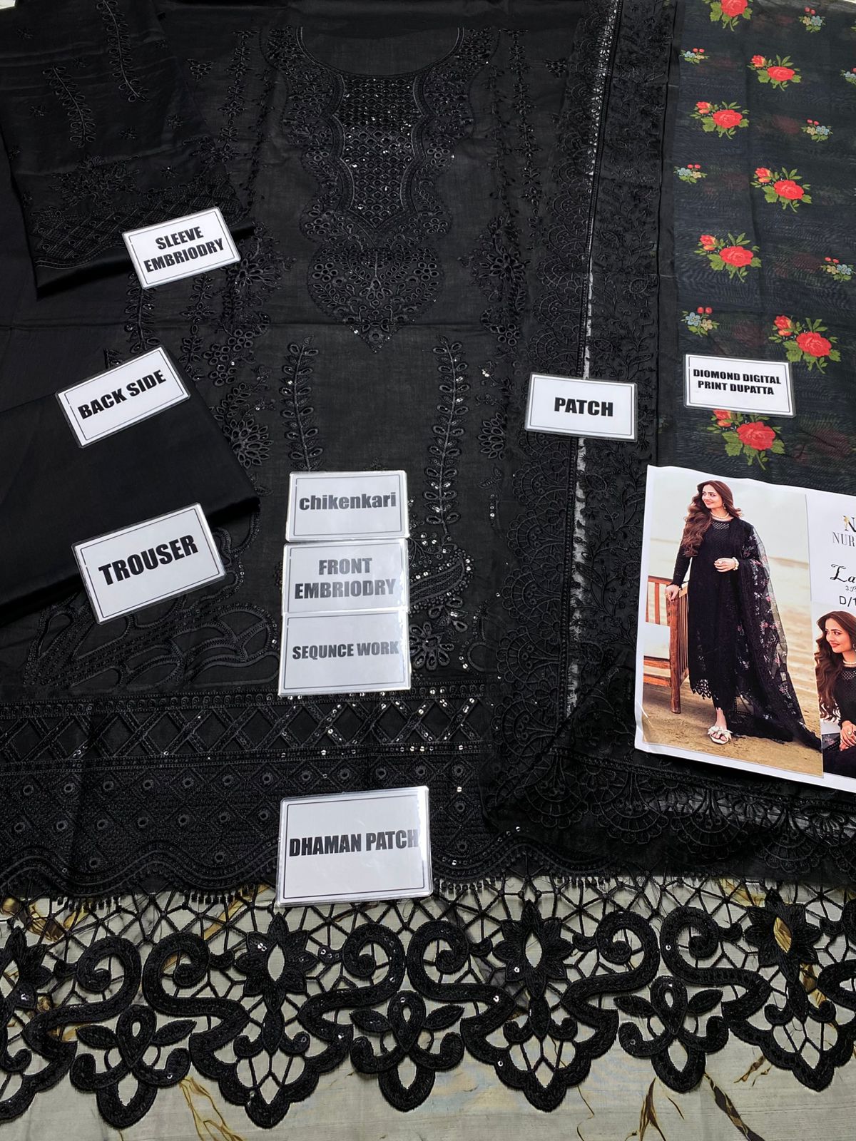 Daman: Beautiful embroidered patch that enhances the elegance of the suit.